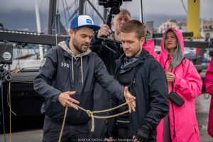 После разминки, совместной пробежки и небольшого кофе-брейка программа продолжилась уже в гоночной деревне. Участники бегового клуба познакомились с яхтой 69F, узнали об особенностях класса и истории проекта.